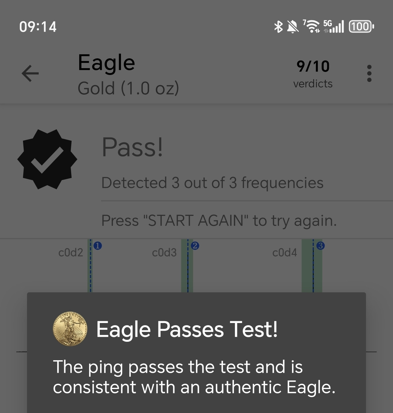 Authenticity: Guaranteed genuine. Each coin passes sonic resonance test (via PingCoin app). Only pure gold with the right dimensions passes. Other metals would cause immediate shift in in ping frequency.