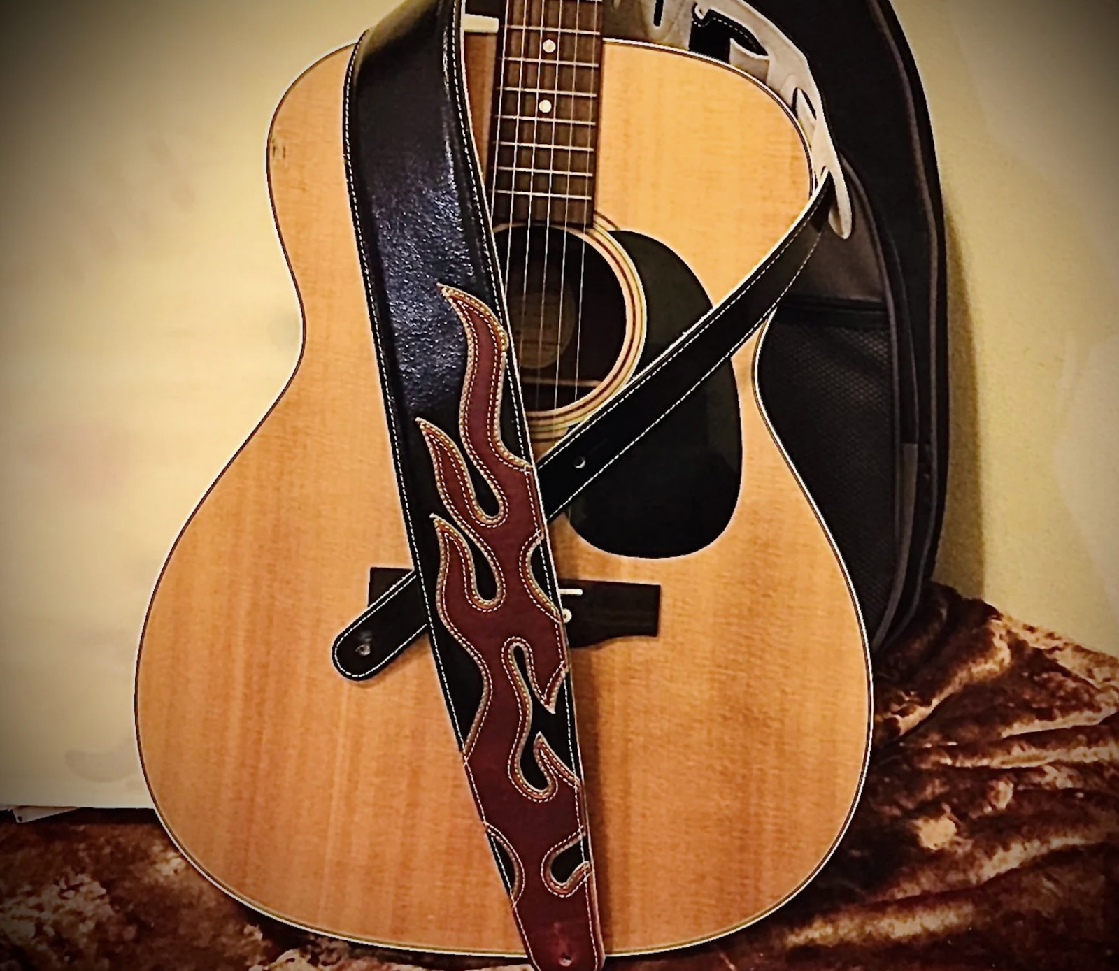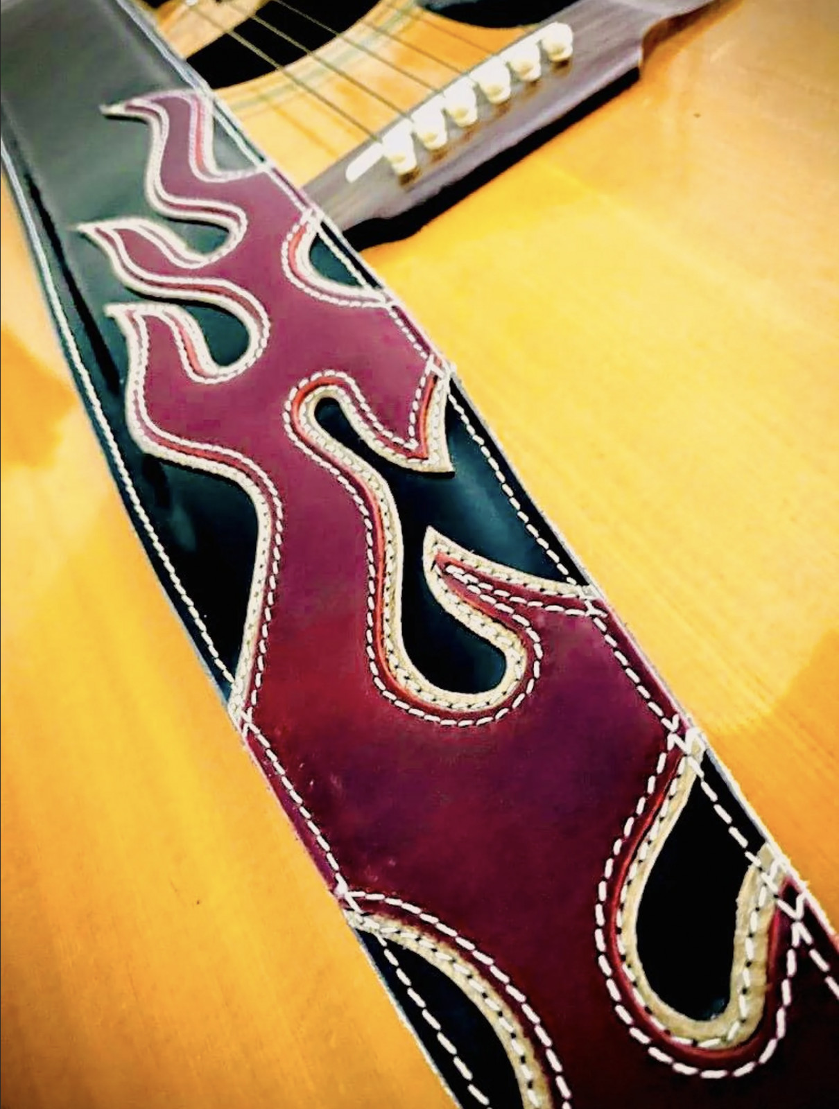 Leather Guitar Strap with Bold Flame Design for Acoustic & Electric Guitar