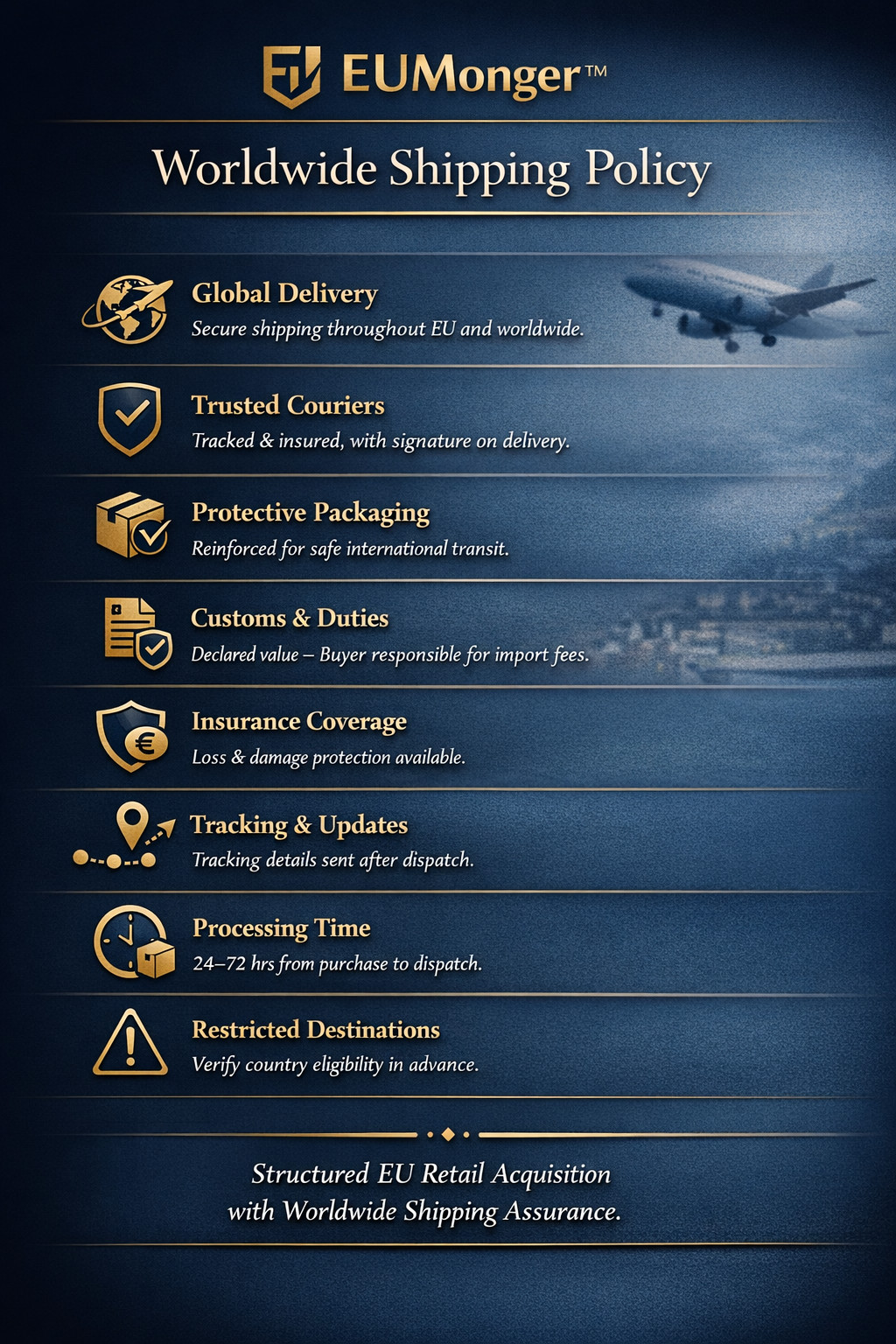 EUMonger™ operates strictly as a proxy purchaser. Upon confirmed request, the selected configuration is acquired from an authorized Apple Store or approved EU retailer and prepared for secure delivery — within Europe or worldwide.