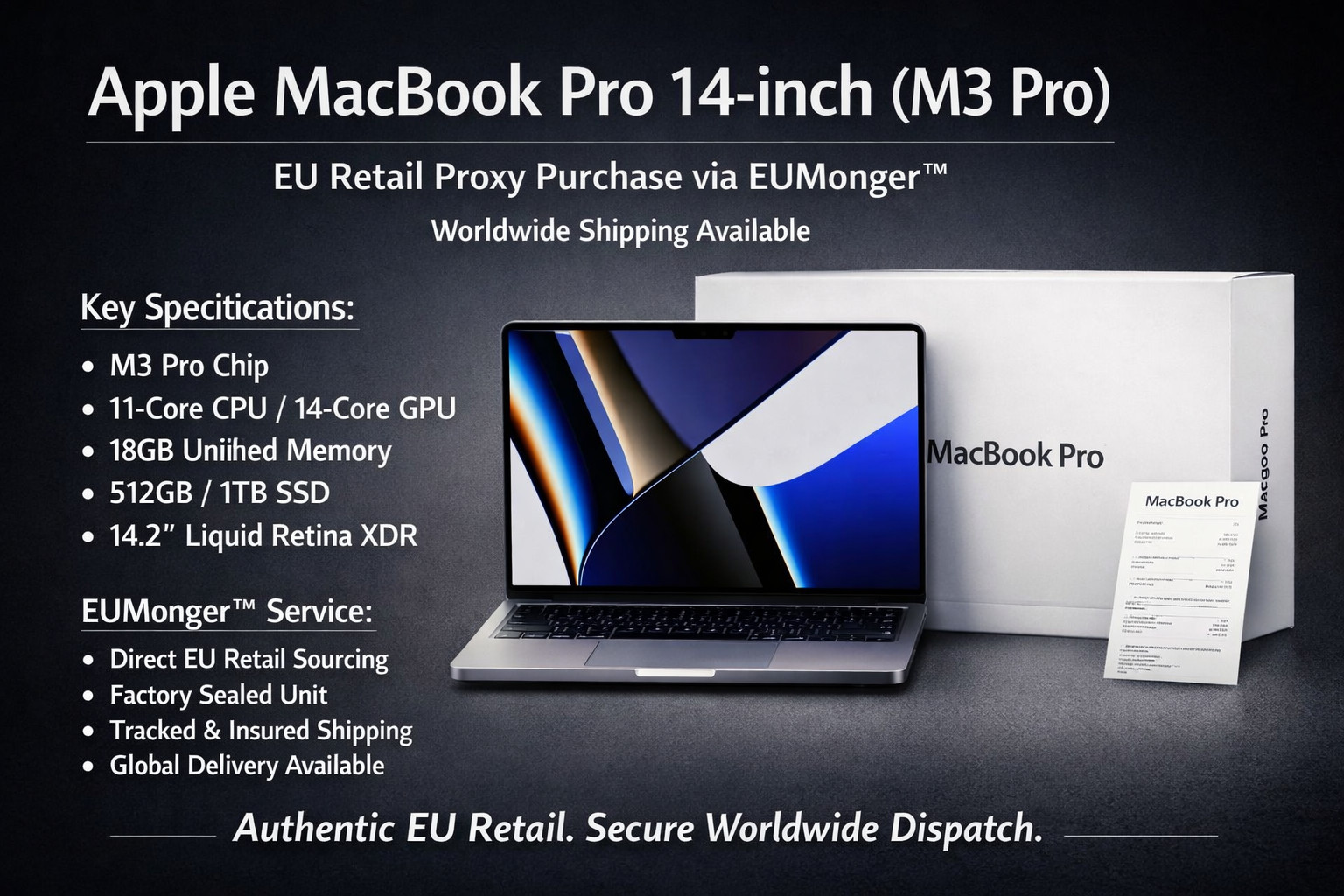 This listing provides structured access to the Apple MacBook Pro 14-inch (M3 Pro), sourced directly from official European retail channels through EUMonger™.
