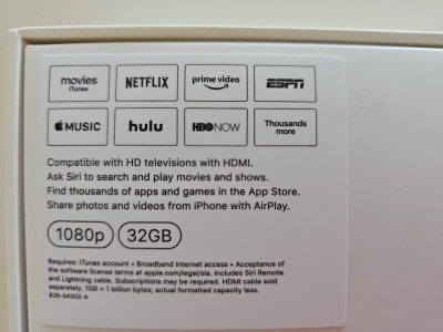 Apple TV hardware with cable. Comes with remote control. Please message me if you have any questions. Thank you for looking.