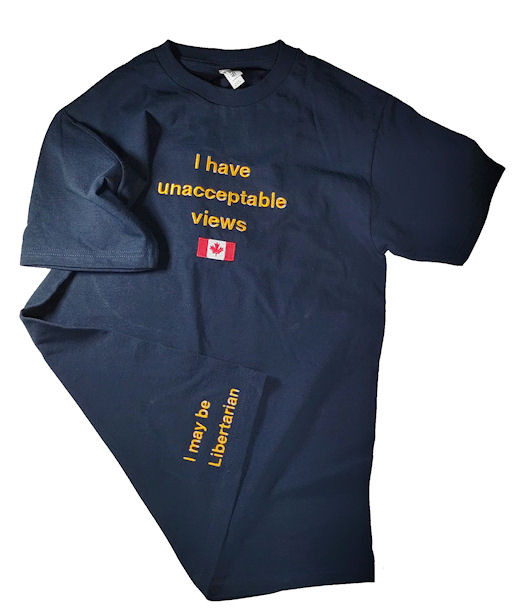 "I Have Unacceptable Views" T-Shirt. High Quality Embroidery. Made in Canada in limited quantity.