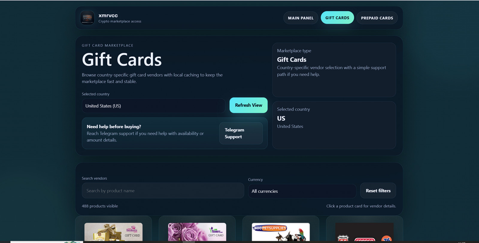 👉 Giftcards Inventory: https://xmrvcc.com/gift_cards