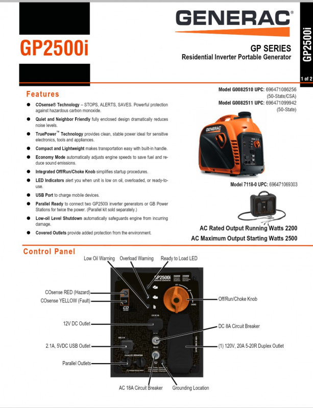 👉 Parallel Ready — Allows you to connect two GP2500i inverter generators for twice the power