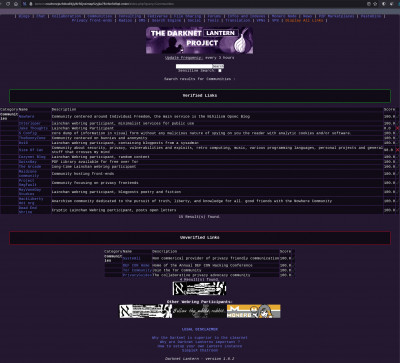 Hello, i am the owner of http://lantern.nowherejezfoltodf4jiyl6r56jnzintap5vyjlia7fkirfsnfizflqd.onion/, i am looking for contributors to help me improve the Darknet Lantern sofware, preferably people that are well versed in python and PHP programming.