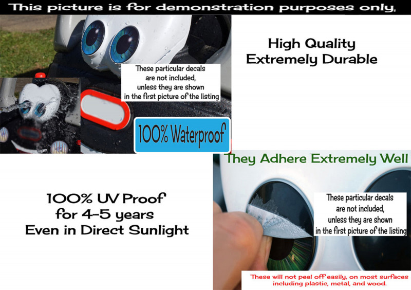 Our decals are made with the highest quality possible. so they will adhere to almost any surface. They are 100% waterproof, and they will resist UV light for 5-7 years outdoors in direct sunlight. Our decals can be placed on actual vehicles, along with children's toys.
