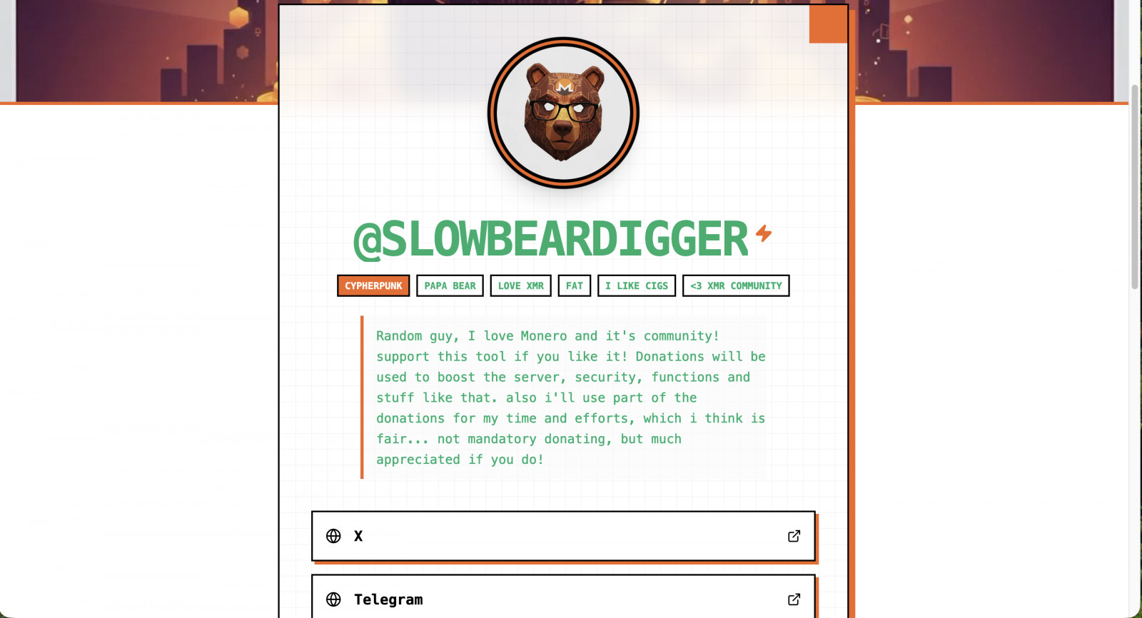 GOXMR is a revolutionary, sovereign link-in-bio platform tailored for the Monero community, offering a privacy-focused alternative to tools like Linktree. With zero tracking, no data/IP logs, and no fees, it empowers users to create customizable profiles for sharing links, projects, and receiving cryptocurrency donations directly to their wallets.