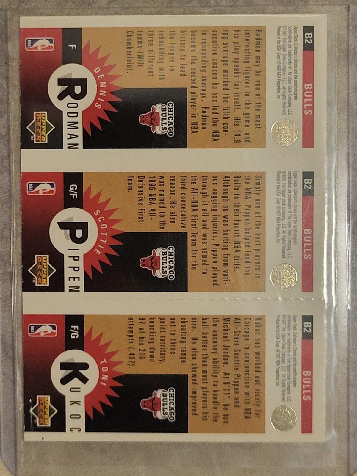 1997-98 Upper Deck GOLD #B2 Dennis Rodman Scottie Pippen Toni Kukoc
