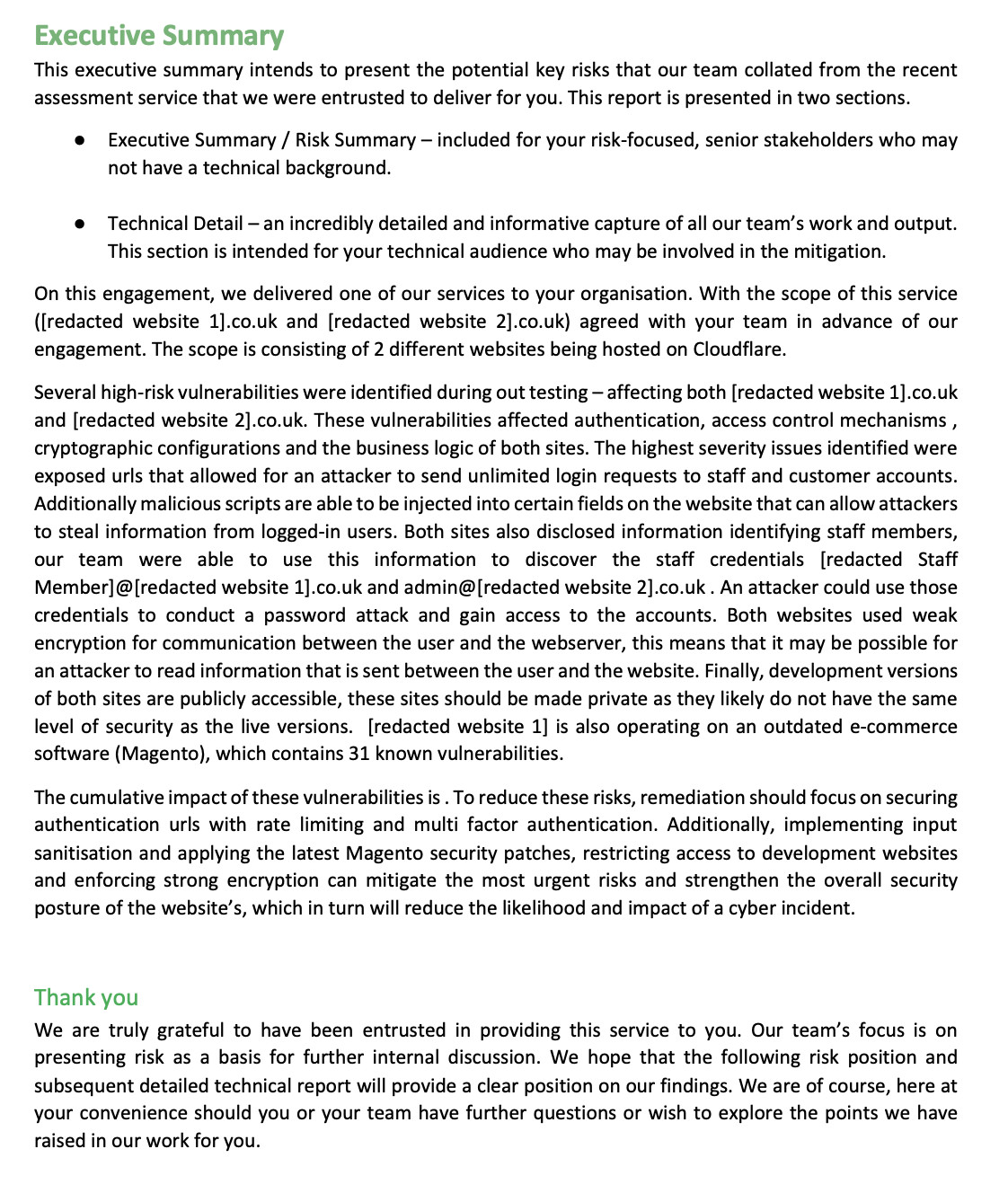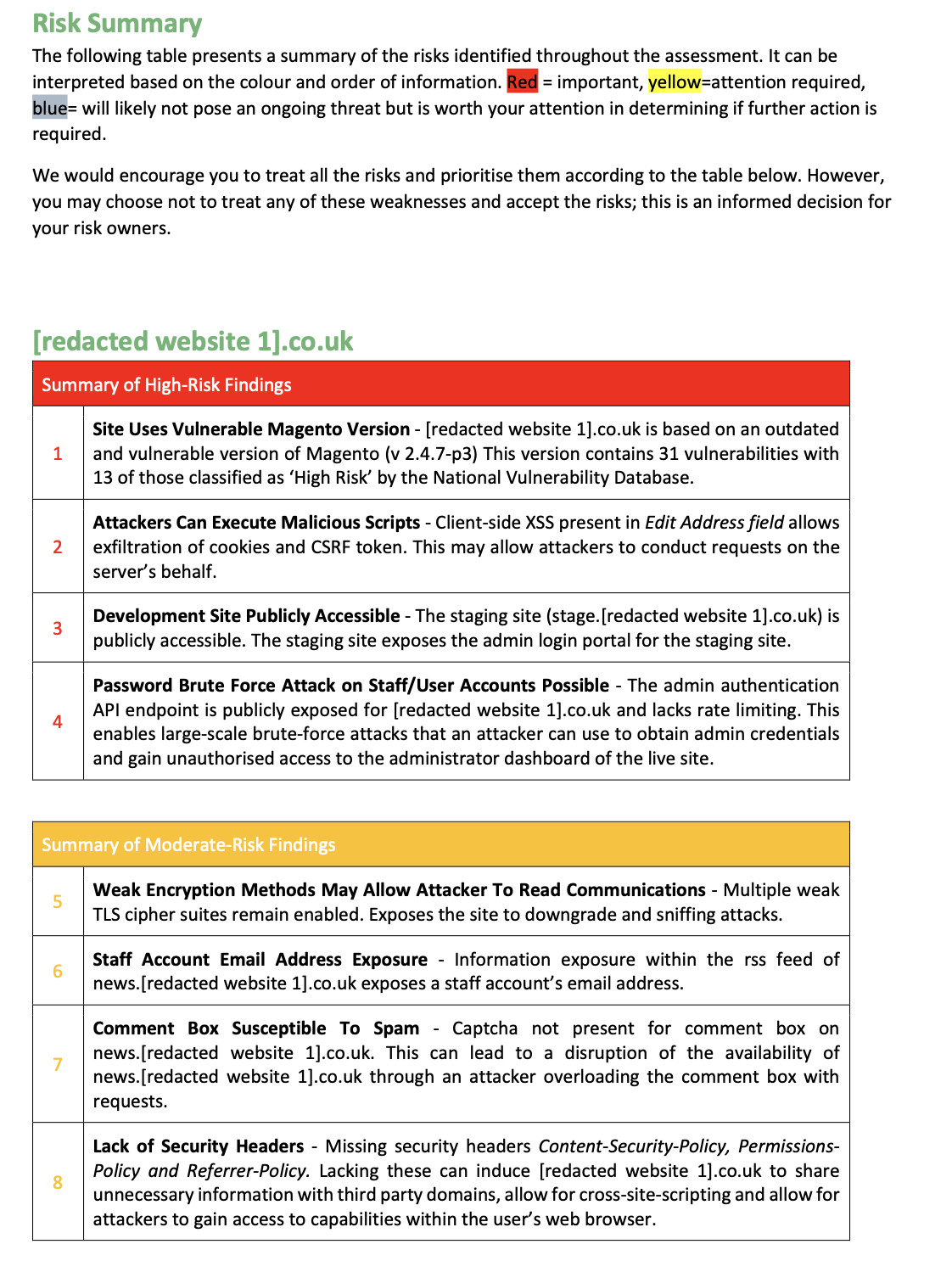 - Comprehensive Vulnerability Assessment Report which adheres to the best practices of UK law enforcement.