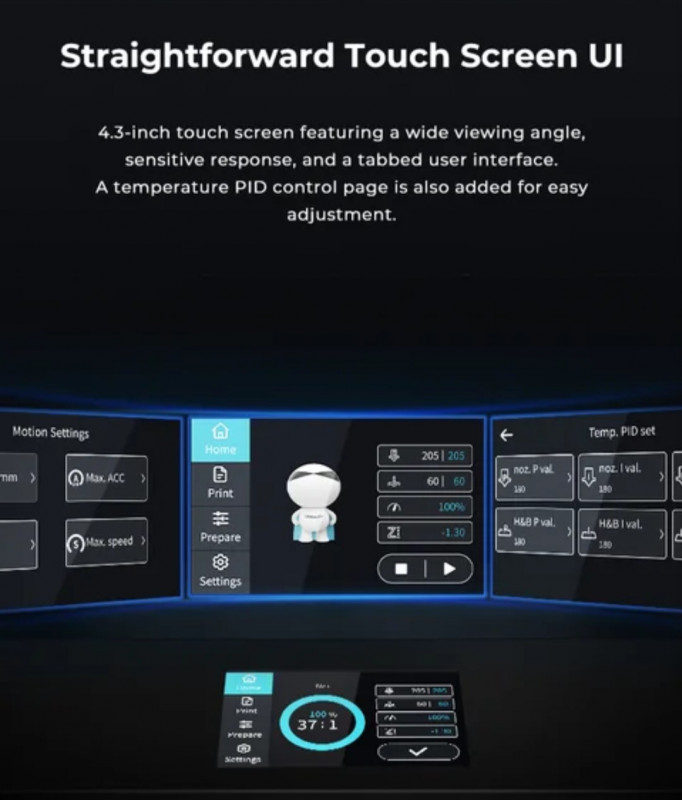 Supported Filaments: PLA, PETG, ABS, TPU, PC, ASA, HIPS