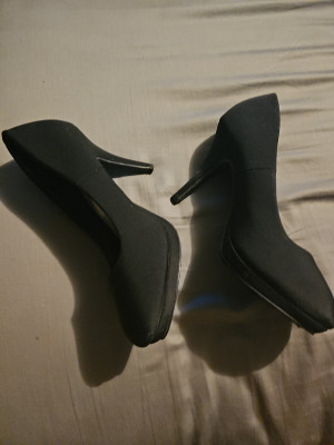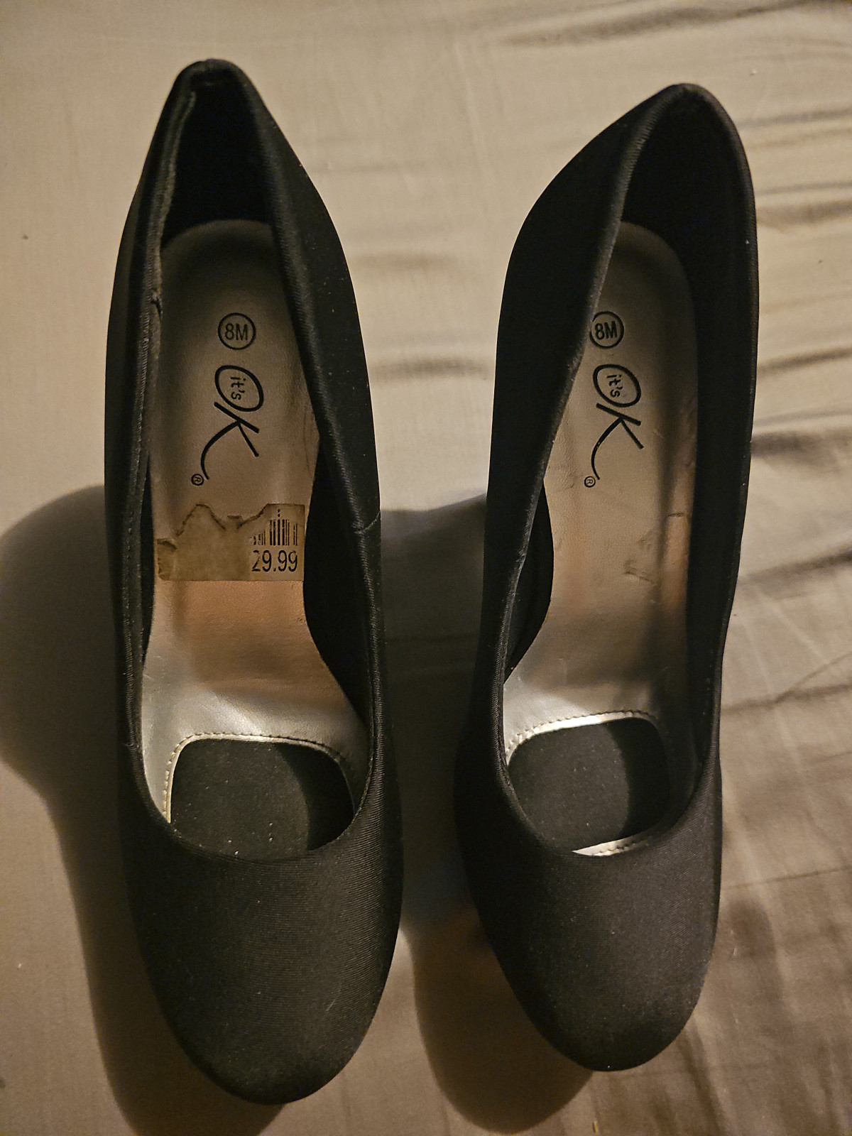 Size 8 black pumps by "Its OK". Features comfort cushioning and soft interior material. Very little wear