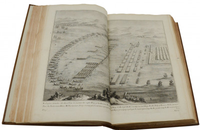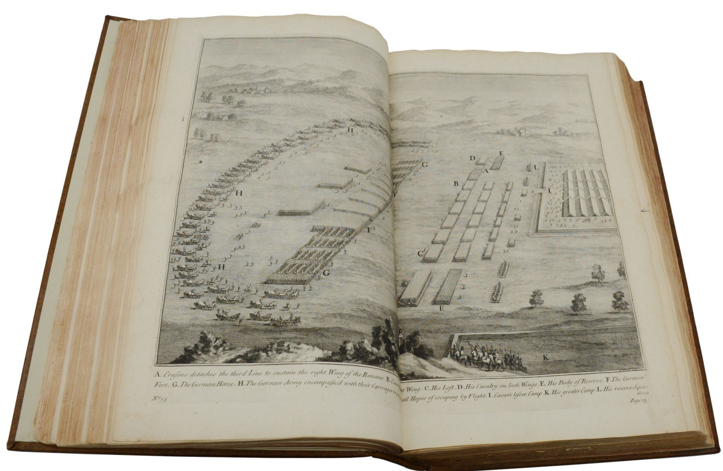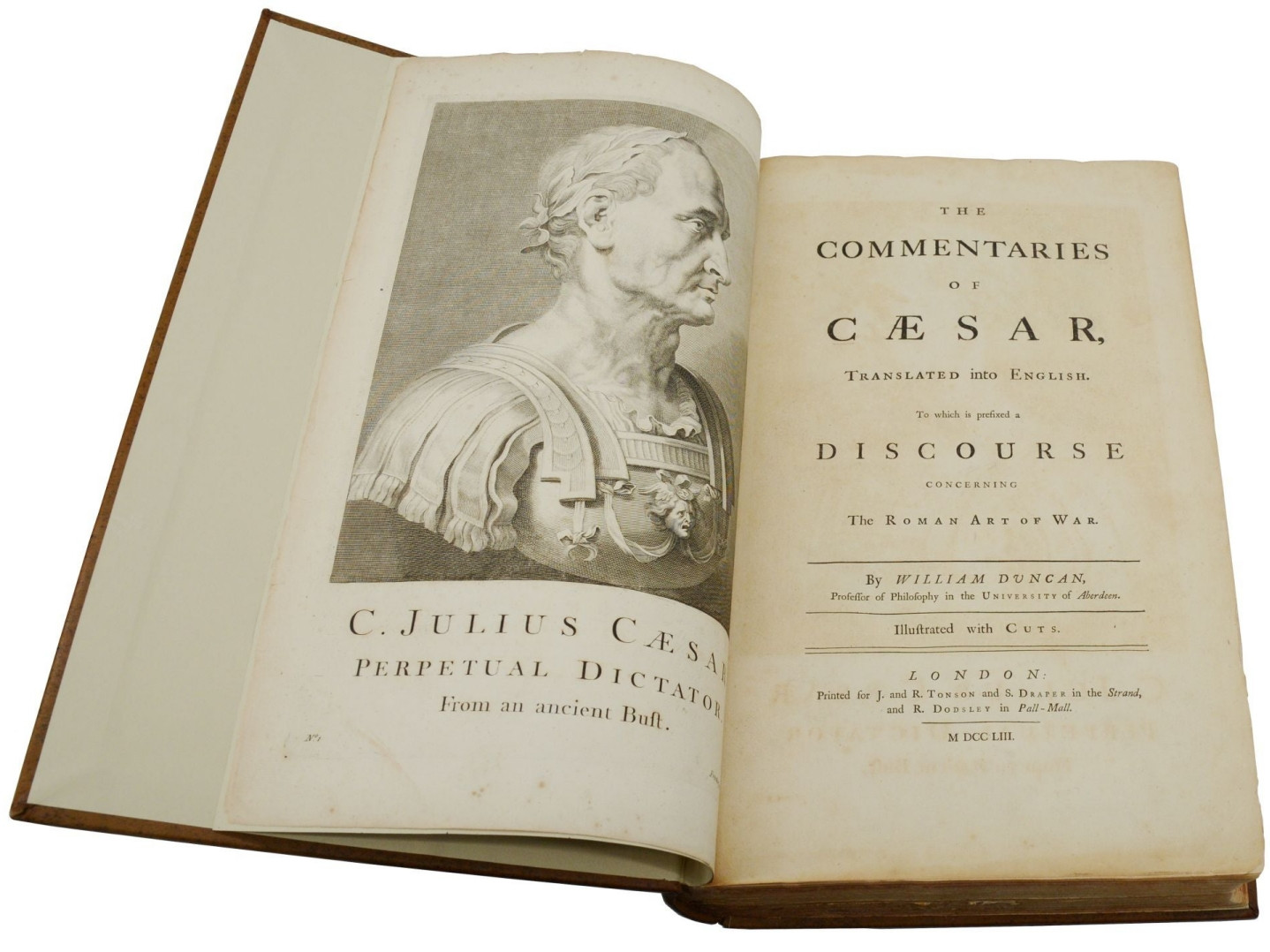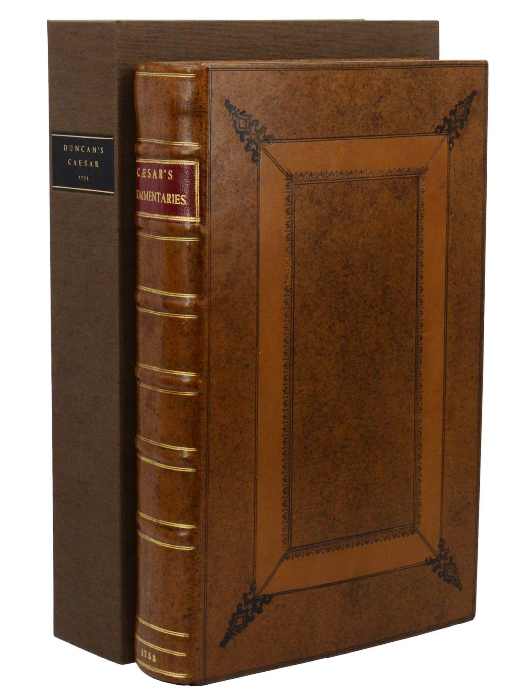 First edition of Duncan's translation. Folio, 16 1/4" x 10 1/8". [xii], civ, 335, [1], [20] pp. Illustrated with an engraved frontispiece portrait of Caesar and 84 engraved plates (including 52 double-page, 23 single page, six folding maps, and three folding plates). Bound to style in full speckled tan paneled calf, red morocco spine label, stamped in black and in gilt; red speckled edges.