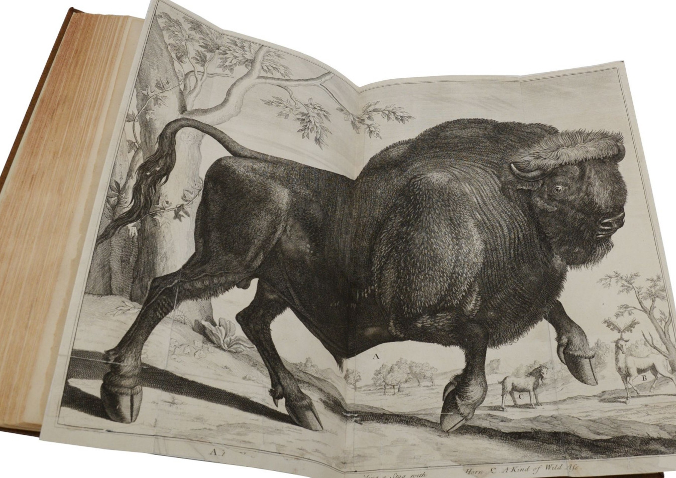 An impressive first edition of William Duncan's great English translation of Caesar's commentaries on the Gallic and Civil Wars, featuring stunning engravings of battlefield scenes and plans, maps of Italy, Egypt, Spain, Britain, and Rome, depictions of Druid, Picts, and German soldiers, as well as the iconic image of the Wicker Man. This copy with the scarce large folding plate of the buffalo, not often found in most copies.