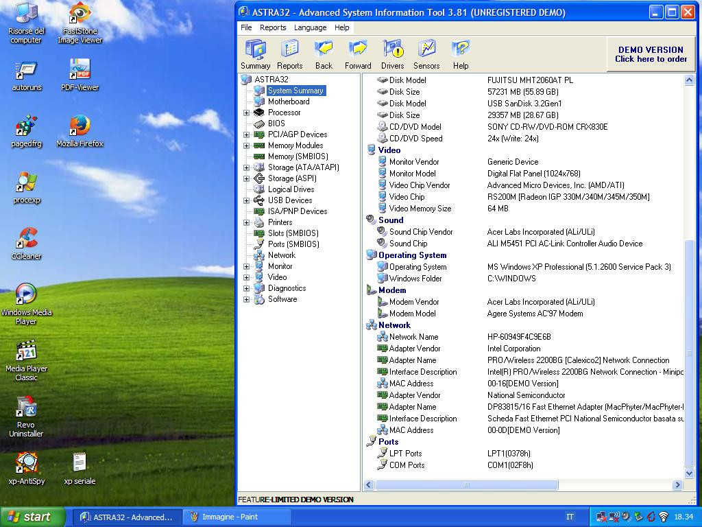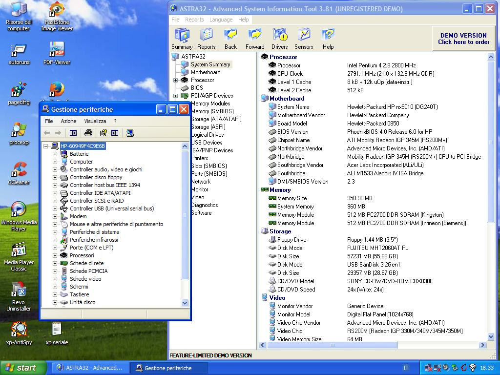 Windows XP pro PC notebook HP floppy parallela pentium 4 Ati Alimentatore