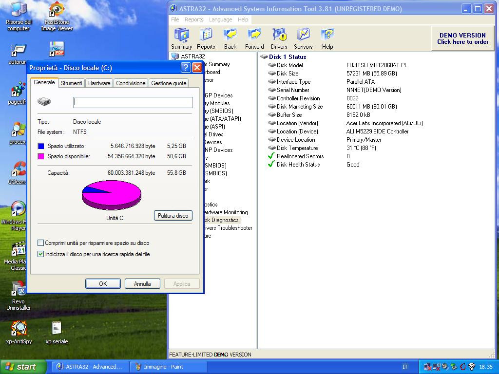 -HD Fujitsu 60 GB testato, nessun errore nei test né S.m.a.r.t.