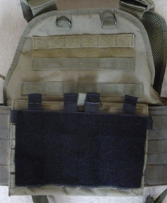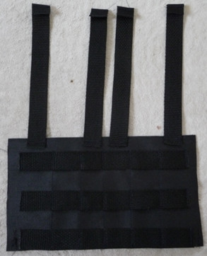 This attaches to a MOLLE surface to allow the attachment of a placard (which mounts onto velcro) for fast swapping of loadouts or for use to convert a concealment vest into an overt vest while in combat.
