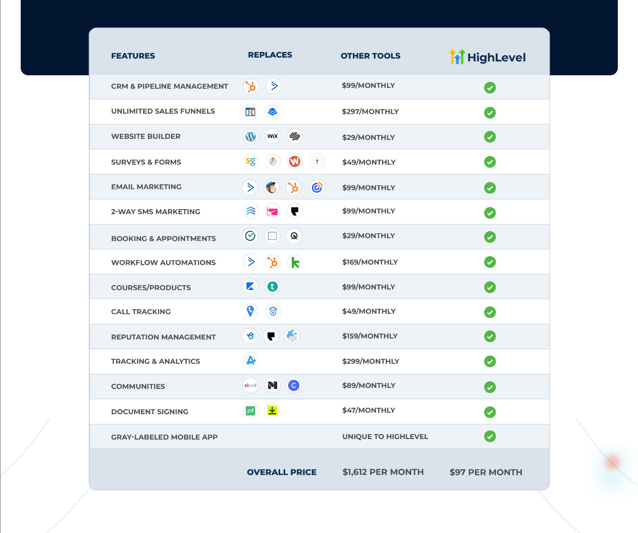 GoHighLevel is the most robust, flexible, and cost-effective marketing platform available today, offering a powerful alternative to well-known solutions like HubSpot, Salesforce, and Pipedrive.