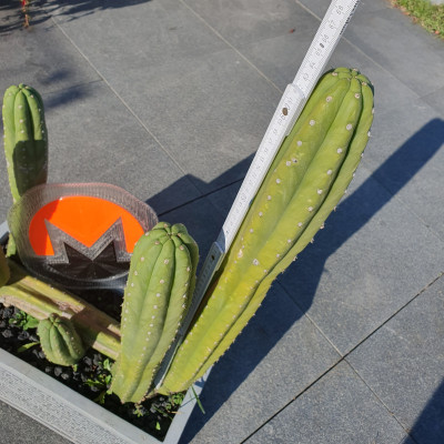 San Pedro (lat. trichocereus pachanoi) is well known for its cleansing and mind healing properties. Admired for its robustness and vigorous growth it can even sustain a day or two in freezing temperatures. During German winter it should be kept cool and dry inside though! The strong growth characteristics make it a great base for grafting.