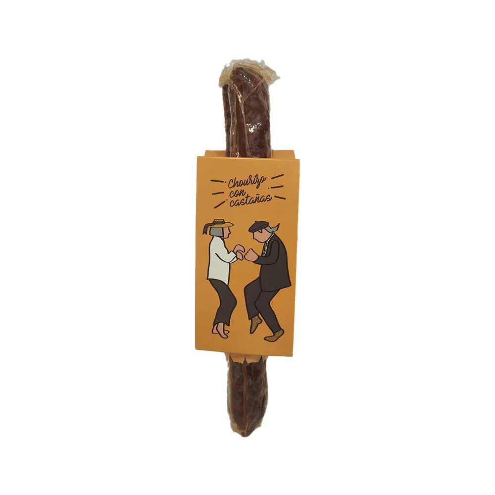 Discover a unique artisan pork sausage made with high-quality lean pork and pork belly, seasoned with sweet and spicy paprika, traditional spices, and an exceptional 35% chestnut content, which adds a delicate sweetness and a rich, distinctive texture.