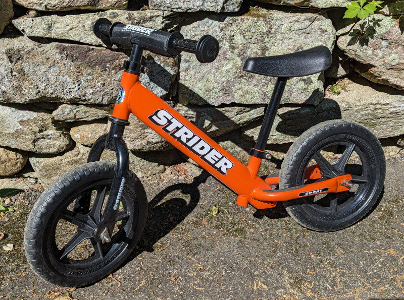 A Strider balance bike is the best way to get your toddler to start learning how to ride. Brand new, this 12" balance bike goes for $130. Mine is used, but in very good condition.