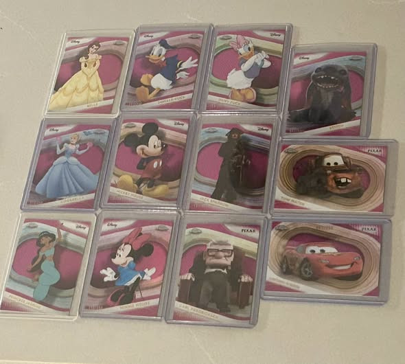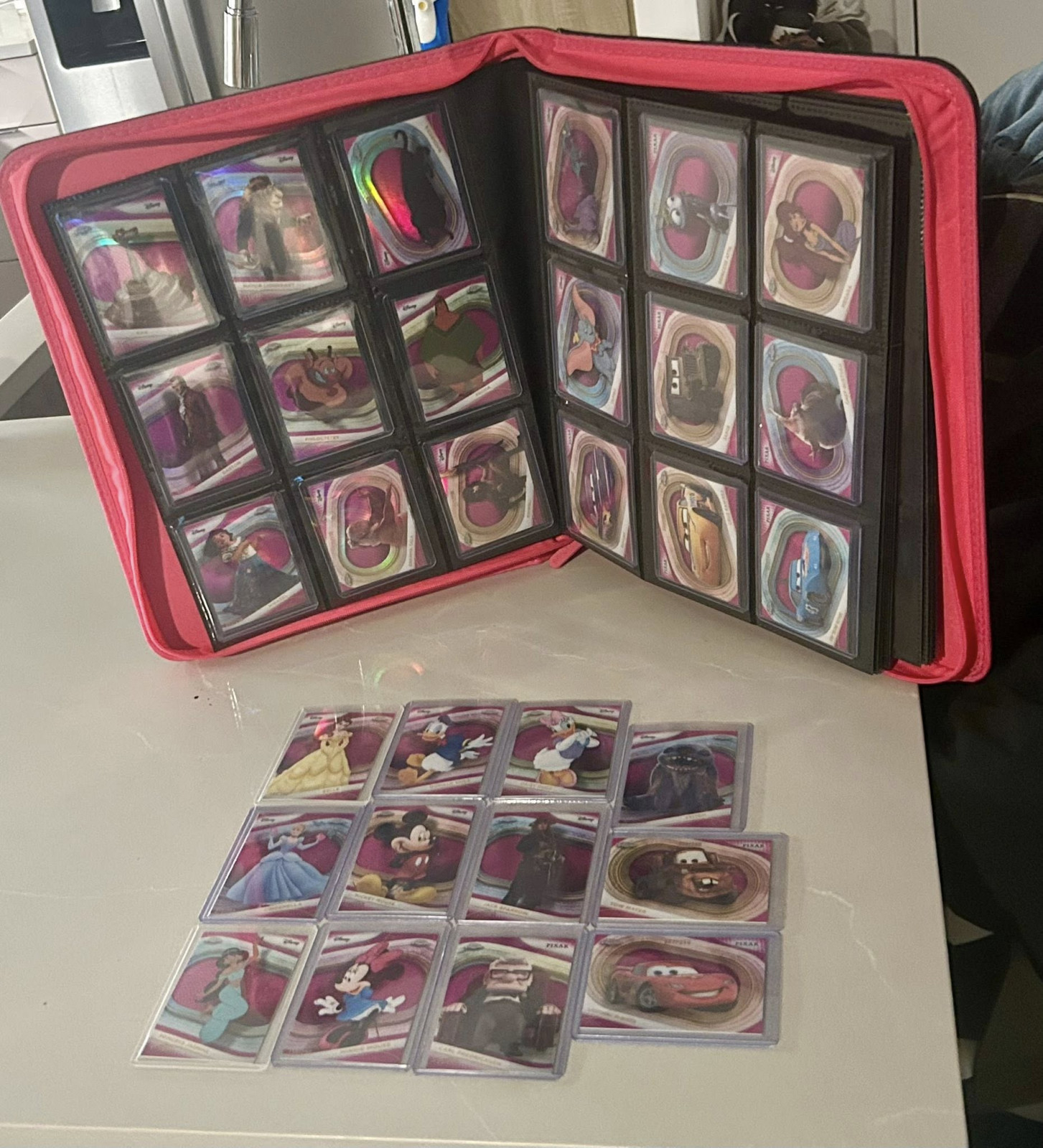 50 of the cards are in the binder and included, all unique. Also includes the main chase cards (Mickey, stitch, jack sparrow) Disney princesses, cars characters, and more.