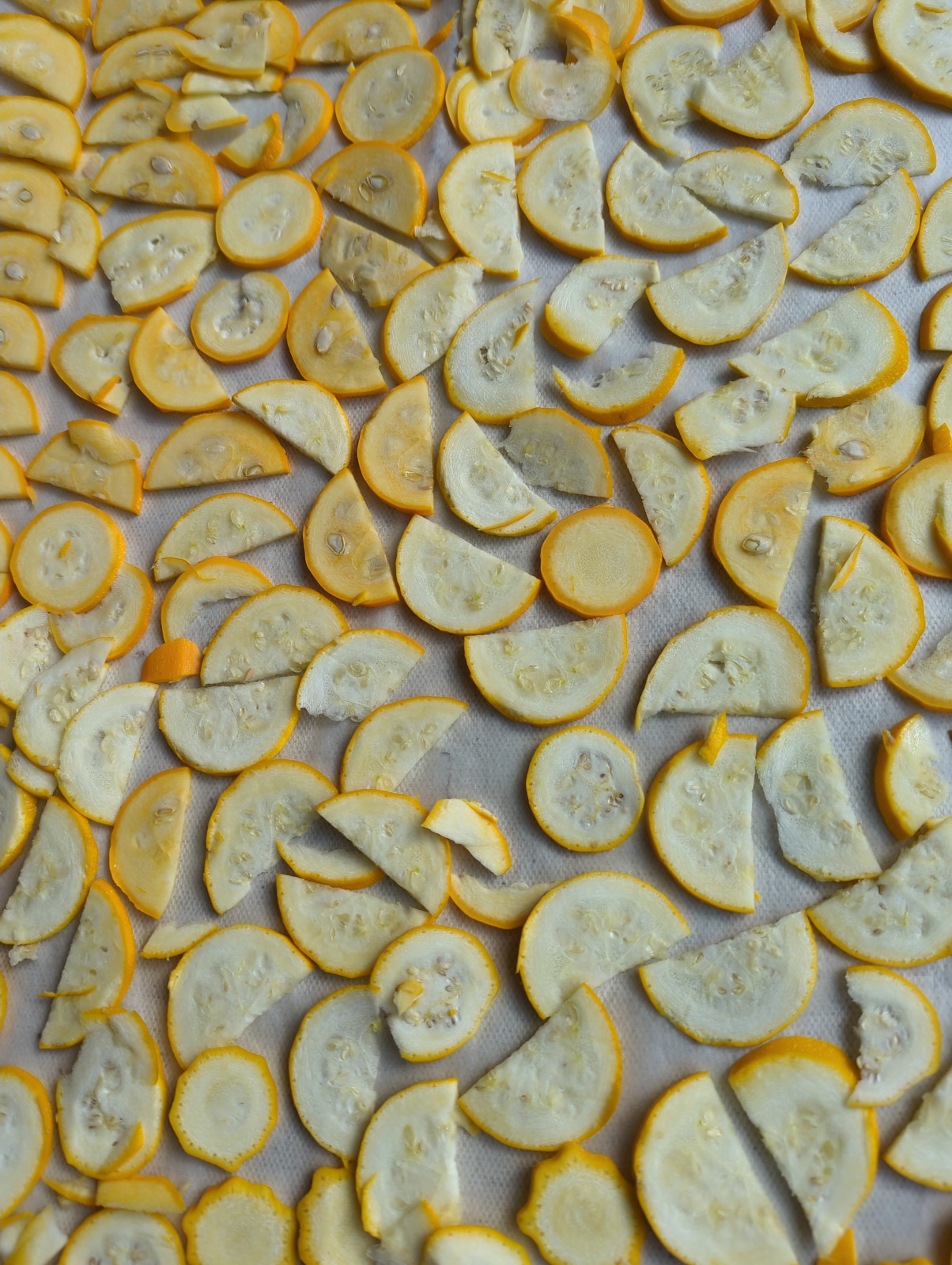 1 kg courgette, verwerkt tot 50 g droge schijfjes, zongedroogd.