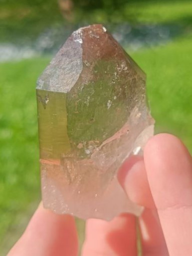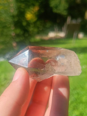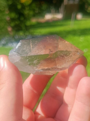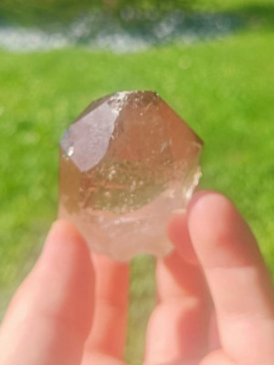 It is a raw, partially broken crystal with beautiful natural growth structures and light smoky color. The stone has not been heat-treated or artificially enhanced – this is its natural color.