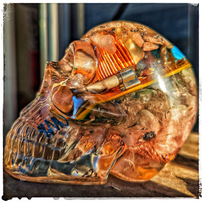 Tags: Skull, cyber orgonite, orgonite, crystal skull, epoxy resin, resin, art