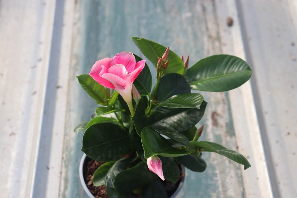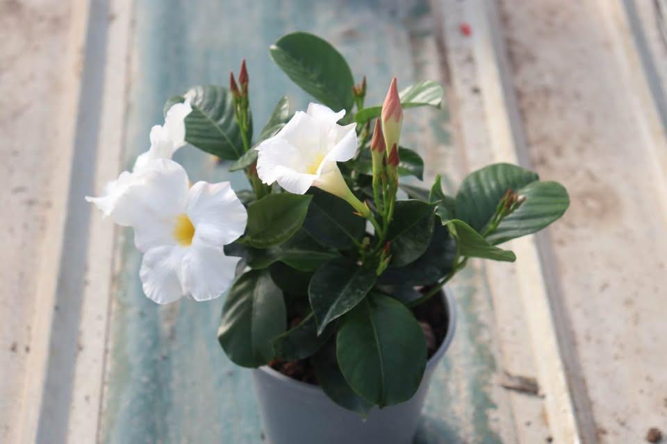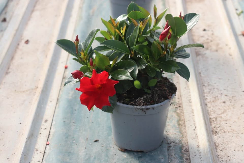 Dipladenia are known for their glossy green leaves and long-lasting, trumpet-shaped flowers that bloom continuously throughout the warm season. Easy to care for and highly decorative, they are ideal for pots, planters, and climbing supports.