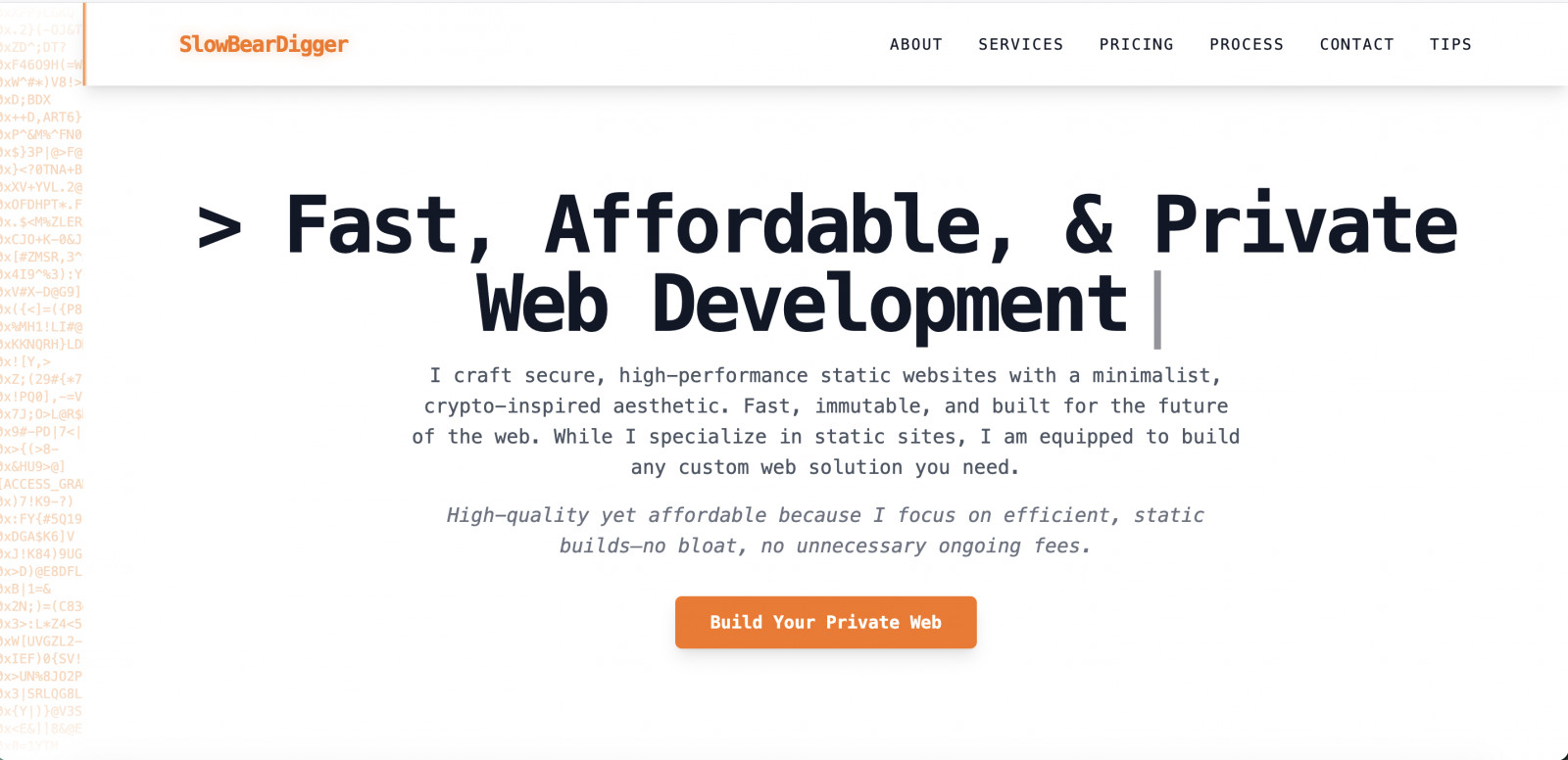 I'm SlowBearDigger, an anonymous developer specializing in high-quality, affordable web solutions built on a foundation of privacy and security.