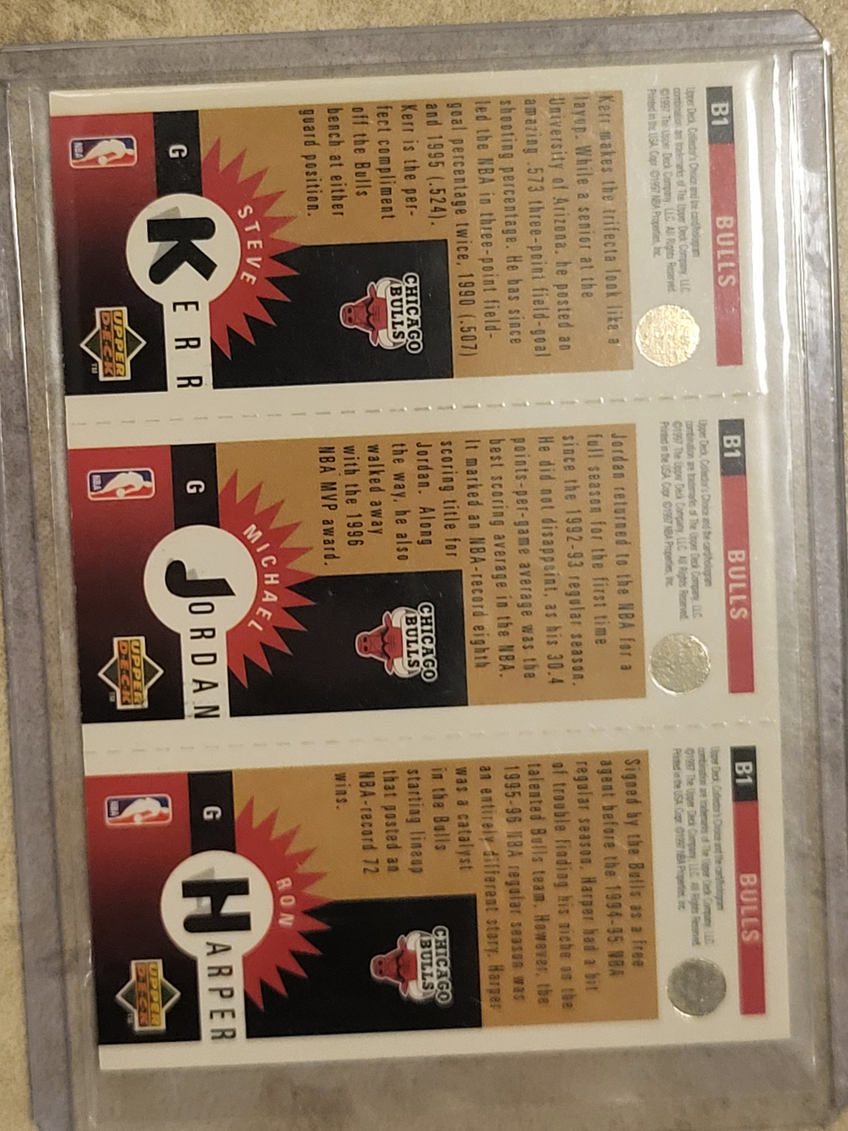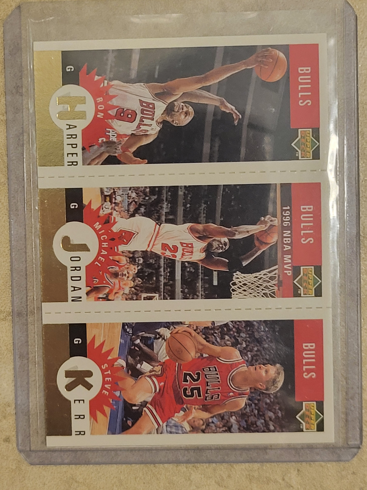 1996 Collector's Choice Team Sets Gold Ron Harper, Steve Kerr and Michael Jordan