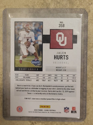 2020 Score - Rookies Jalen Hurts #358 Gold Rookie