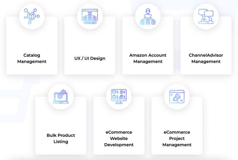 • Catalog Management: We manage and optimize your product catalog for improved sales and visibility.
