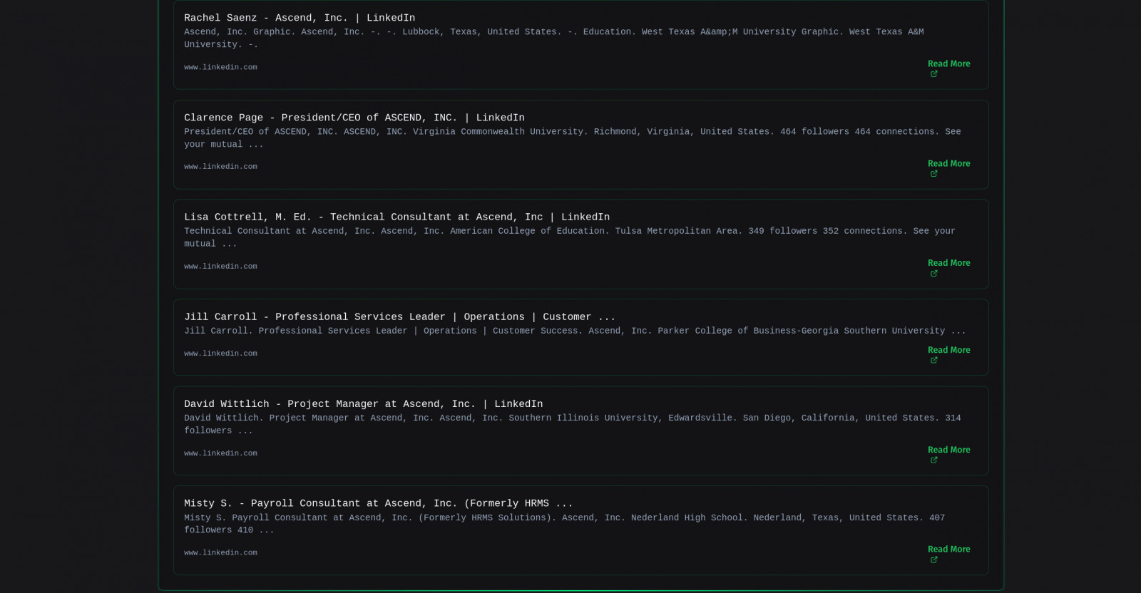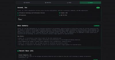Imagine having a cyberpunk-themed intelligence platform that transforms a simple company name into a complete dossier in minutes. OSINT Terminal uses cutting-edge AI to automatically scour the internet, analyze news sentiment, map employee networks across multiple rings, discover hidden social media profiles, and visualize complex business relationships in stunning interactive charts. It's like having a team of researchers working 24/7 - just type in a company name and watch as the platform magically pulls together LinkedIn profiles, Instagram accounts, news articles, employee counts, and even calculates sentiment analysis from recent coverage. The sleek terminal-style interface makes you feel like a digital detective, while the AI does all the heavy lifting. Perfect for investors, recruiters, sales teams, or anyone who needs deep company insights fast. No manual research, no endless Google searches - just pure intelligence at your fingertips.