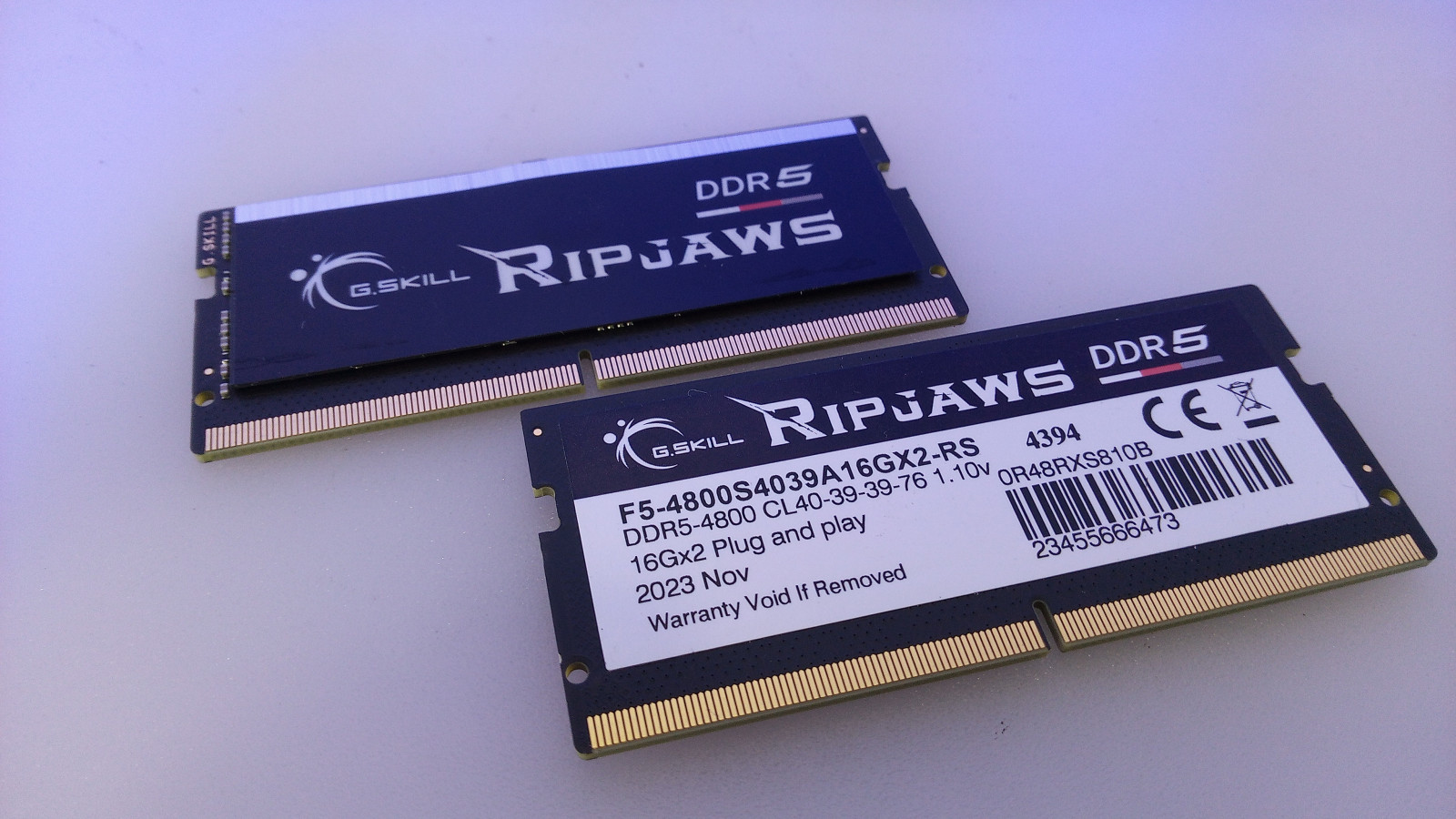 G.SKILL Ripjaws 32GB (2x16GB) DDR5- 4800 SO-DIMM CL40 1.10V 262-Pin Laptop RAM