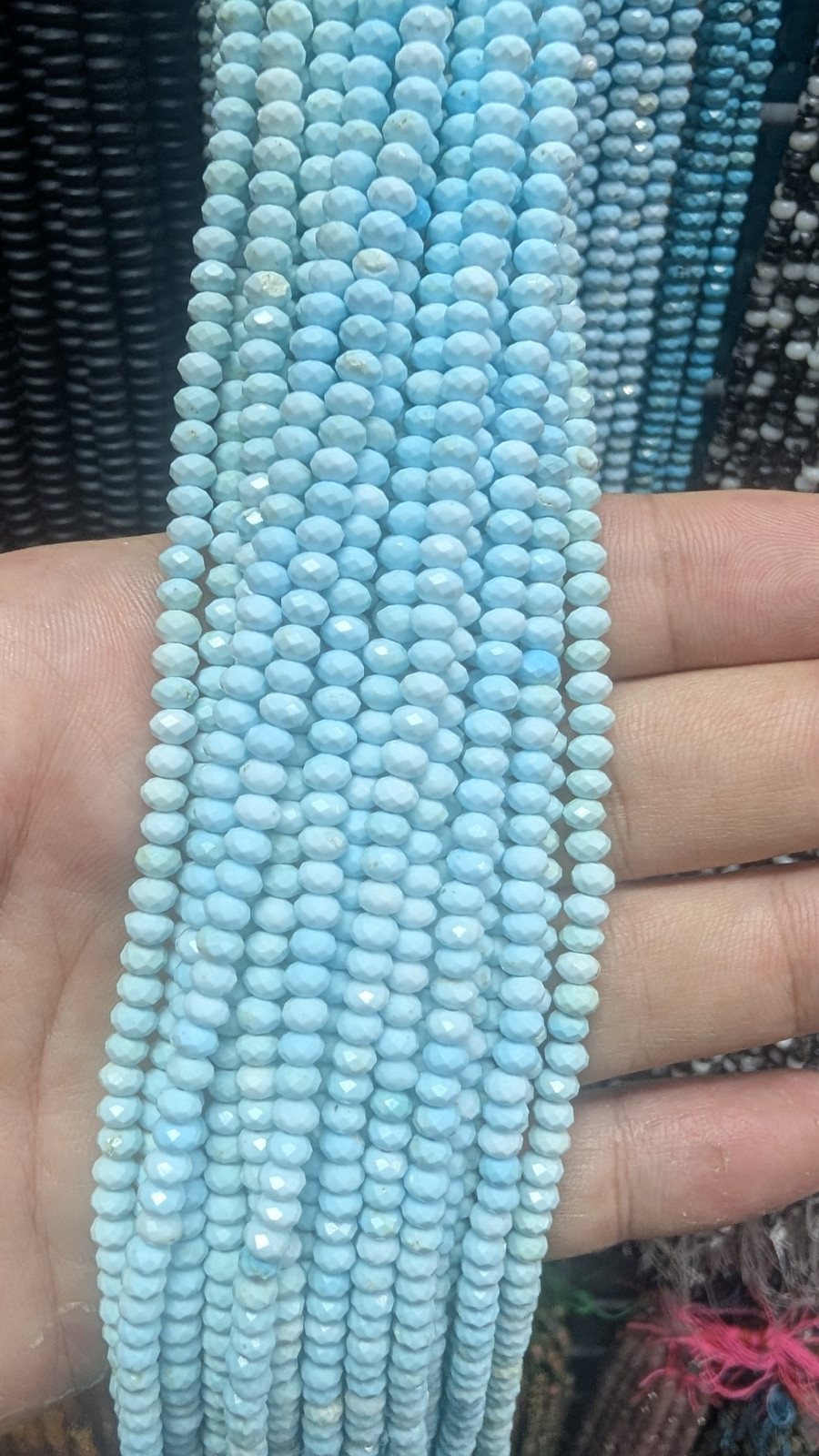 4mm Wholesale Faceted Turquoise Heishi Rondelle Disc Long Strand