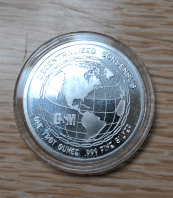 Authentic 1 troy oz. .999 silver bullion from Golden State Mint. Has Litecoin symbol on front says "Power in Numbers". Back says "Decentralized Consensus" with the GSM inscription. I believe these were produced in 2021. You can check on the Golden State Mint site.