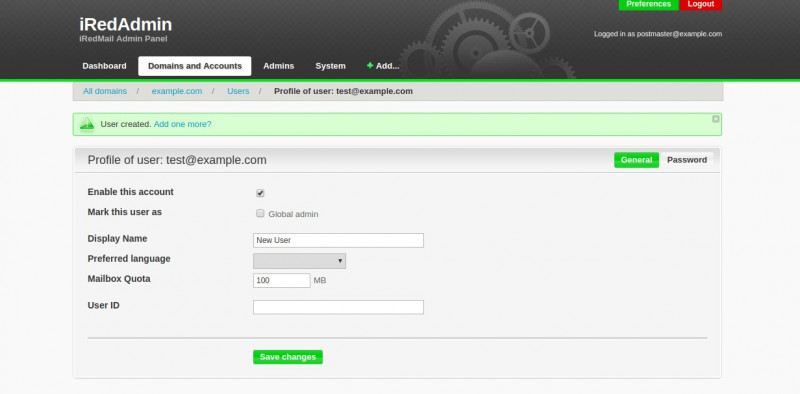 Manage your mail accounts with a web admin panel. iRedMail ships a free and easy to use web admin panel along with it's product. - iRedMail also offers a separate, paid edition iRedAdmin-Pro with more features. https://iredmail.org/admin_panel.html