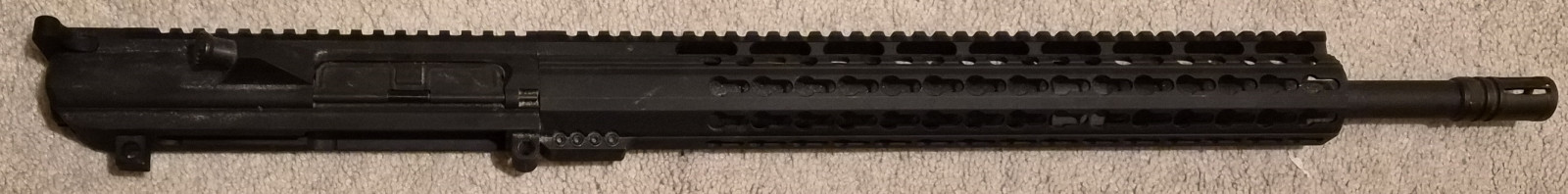 Complete 308 upper, includes charging handle and BCG. 18" barrel, never fired. This fits the DPMS pattern 308 ARs, which is compatible with the majority of what you will find on the market aside from stuff like Colt, Knights Armament, etc.