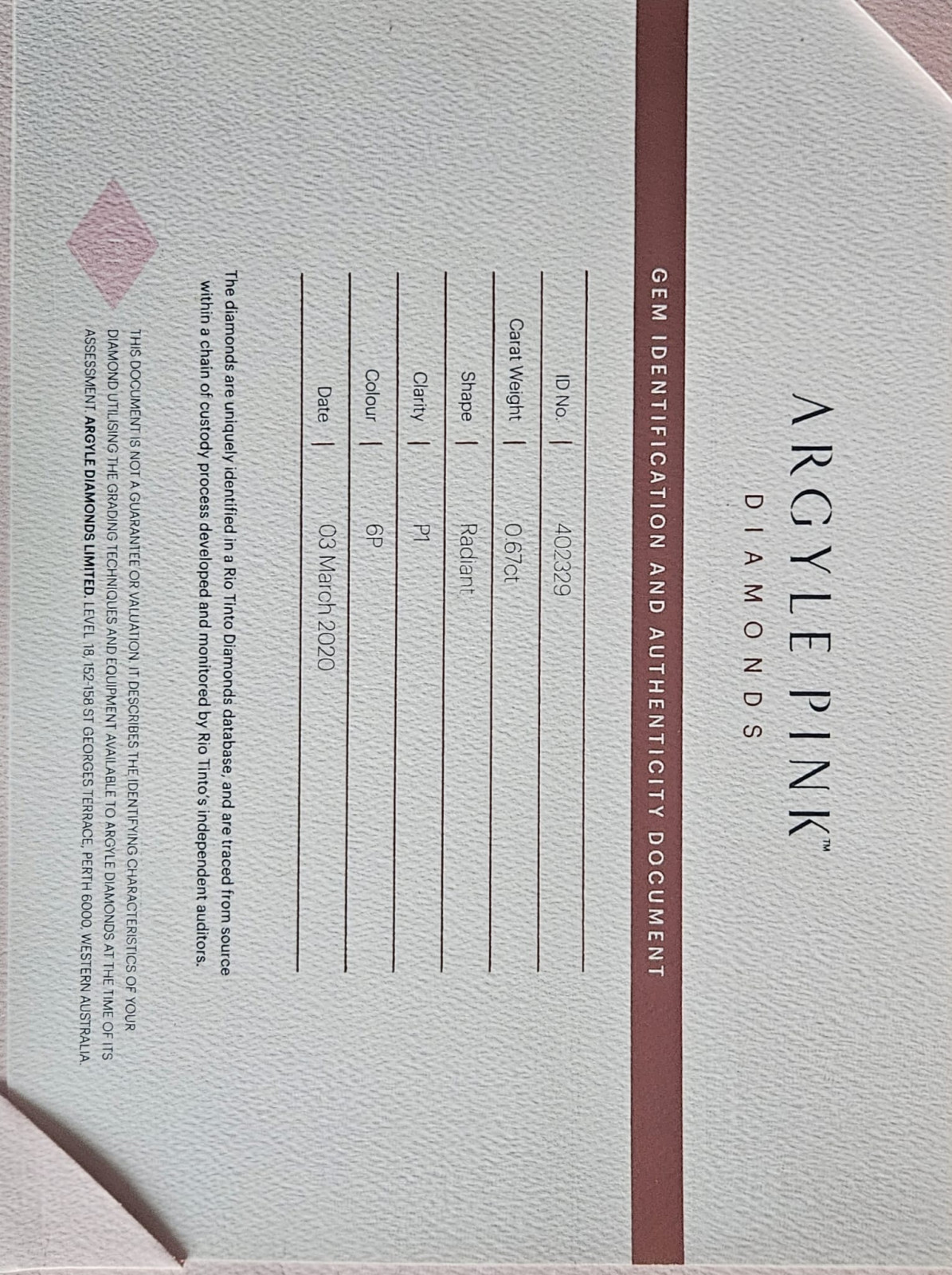• Registered and tracked diamond (Argyle Pink Diamonds / Rio Tinto)