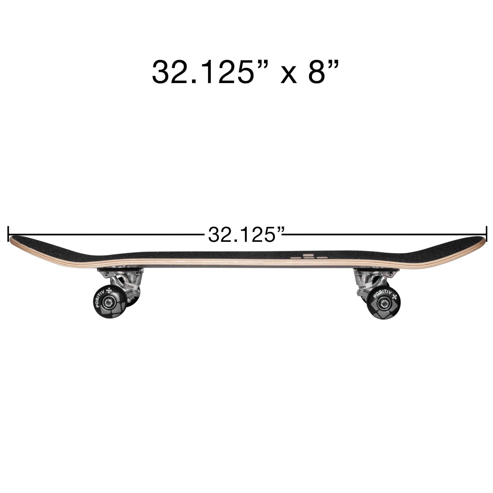 The board measures 8.0” x 32.125” with a wheelbase of 14.375”, and comes ready to ride straight out of the box.