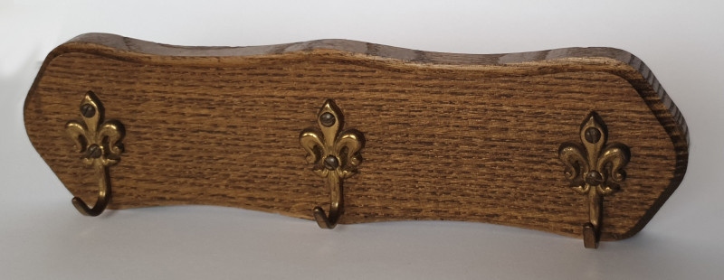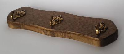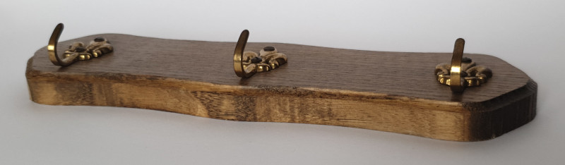 Wooden Key Hanger with 3 Brass Hooks 18x5x1,2cm