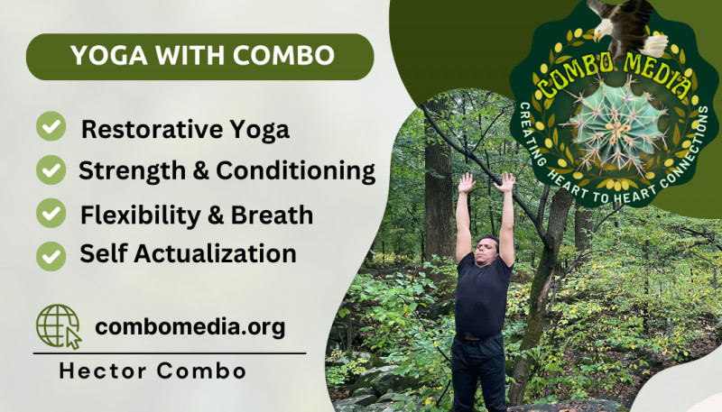 Yoga with COMBO is a combination of elements: breath-work, meditation, energizing flow and restorative yoga. Hector Combo emphasizes the feeling of flow, and the mind/body/spirit connections through guided exercises which synergize the Self.