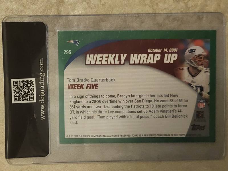 Tom Brady 2002 Topps Weekly Wrap Up Card New England Patriots #295 Graded DCI 8. Ships Bubble Mailer.