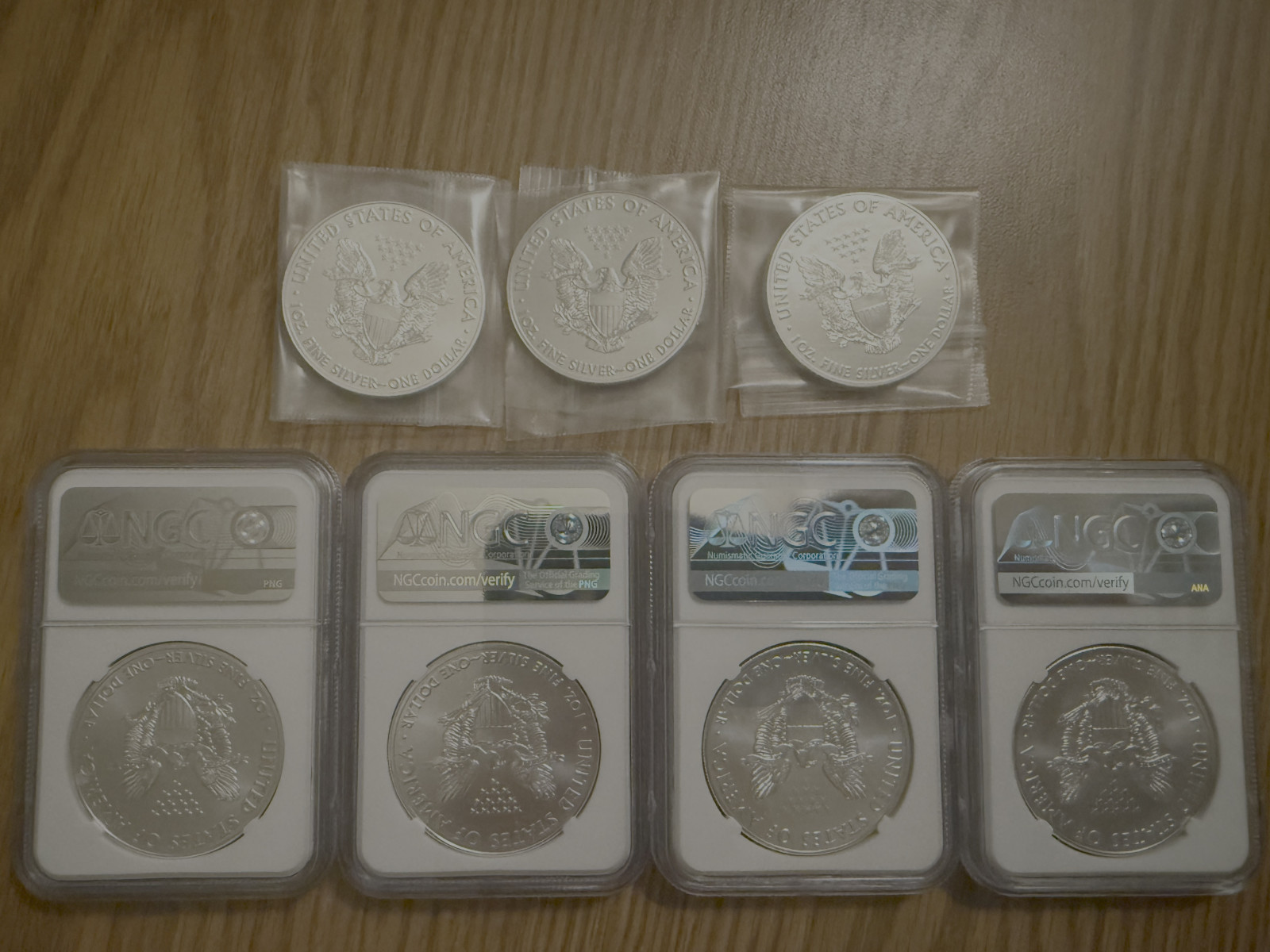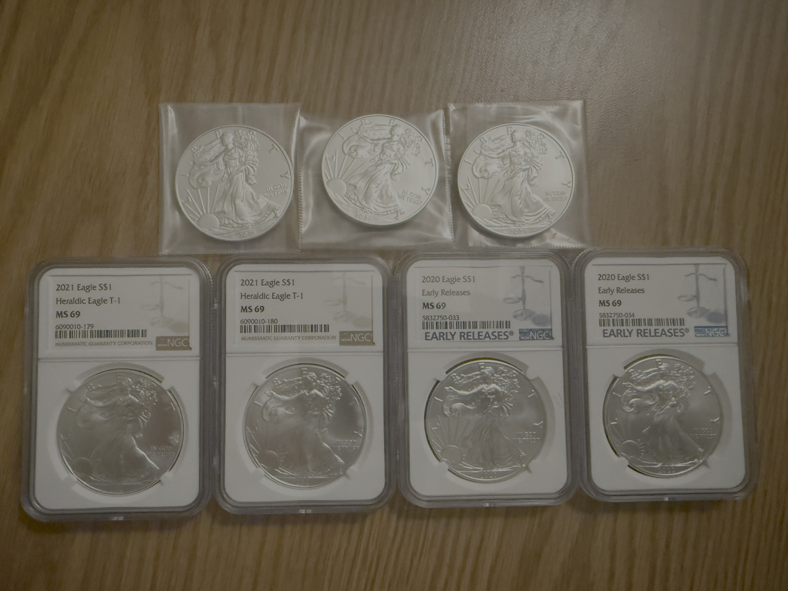 (Out of stock) American Silver Eagle Lot - 4 NGC MS69 (2020-2021) + 3 BU 2021 - 7 oz Silver
