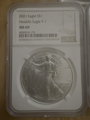 - (2) 2021 $1 Silver Eagle - Heraldic Eagle Type 1 - NGC MS 69