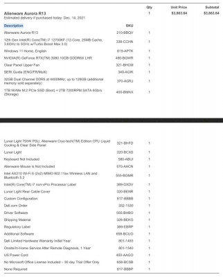 Brand New Alienware R13 Gaming PC (i7 12700F1TB HDD1TB M2 SSD+ 2TB Sata)