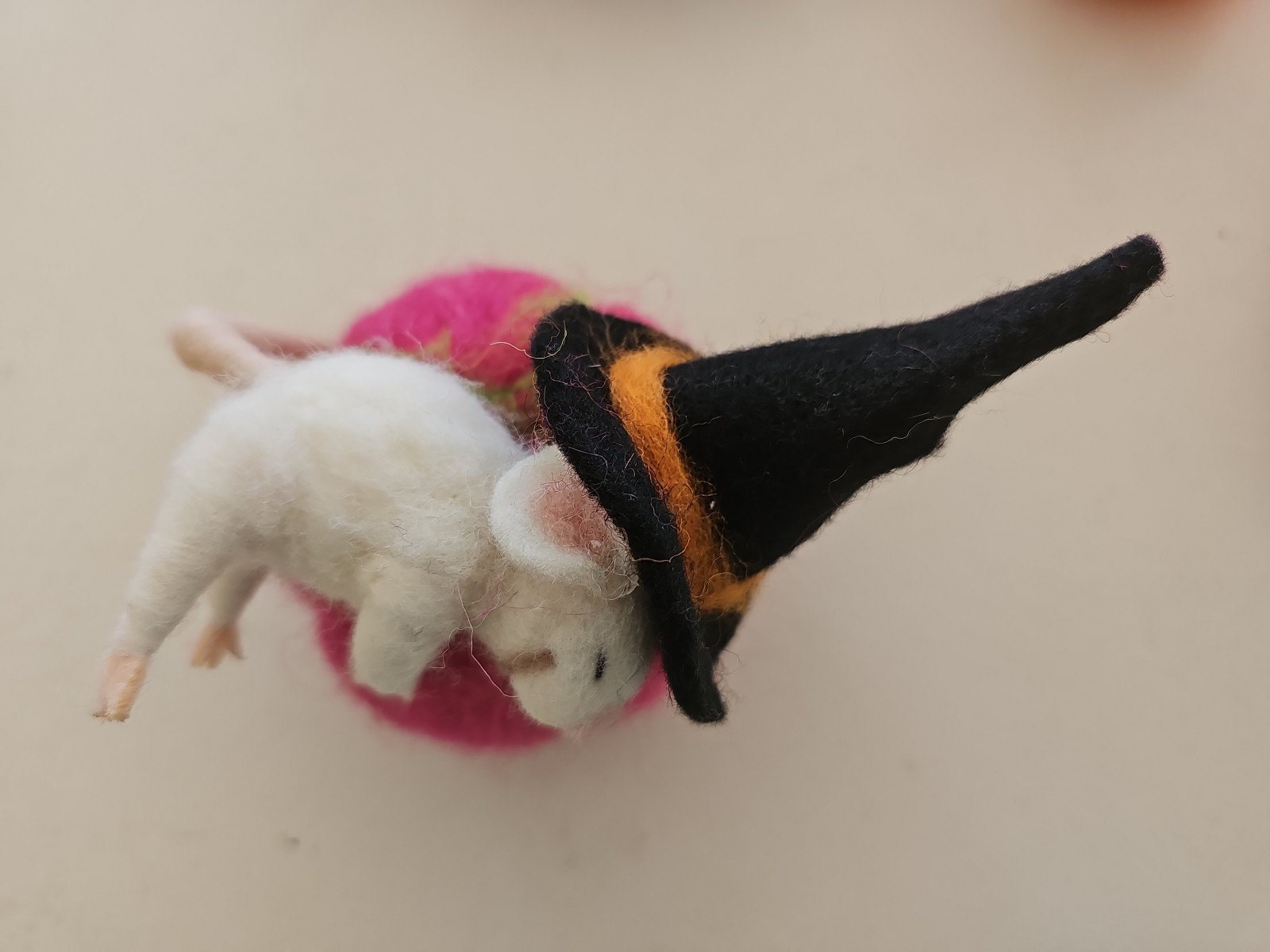 Halloween Decorations - Mouse in Witch Hat on Pumpkin