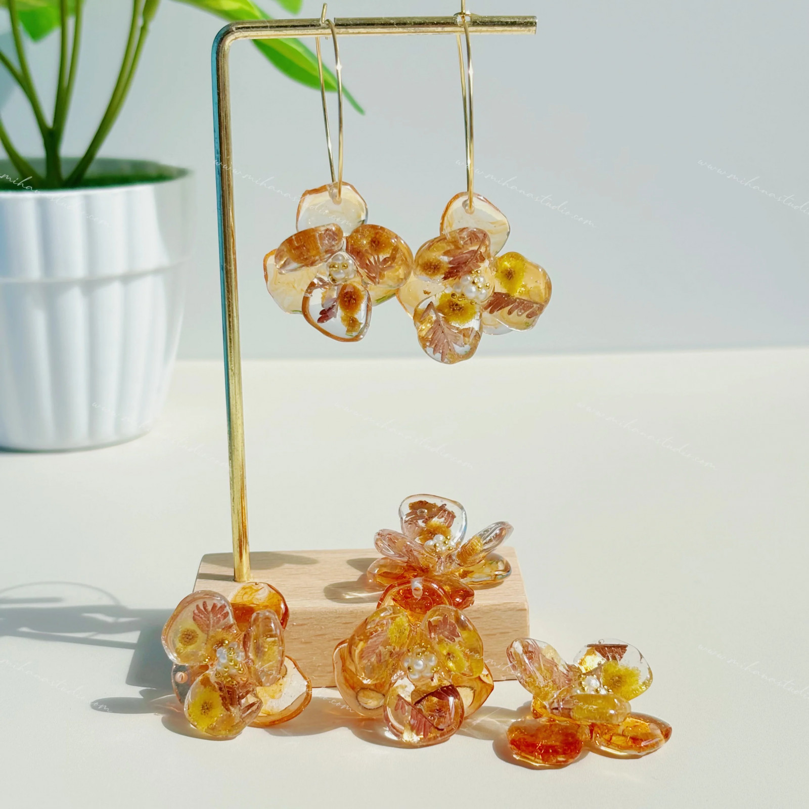 Handmade Clover Earrings with Real Acacia, Gold filled