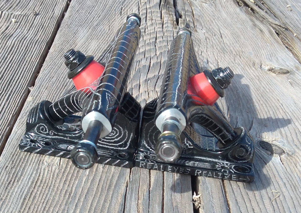 High quality, high performance reverse kingpin trucks for cruisers and longboards. Set of 2.